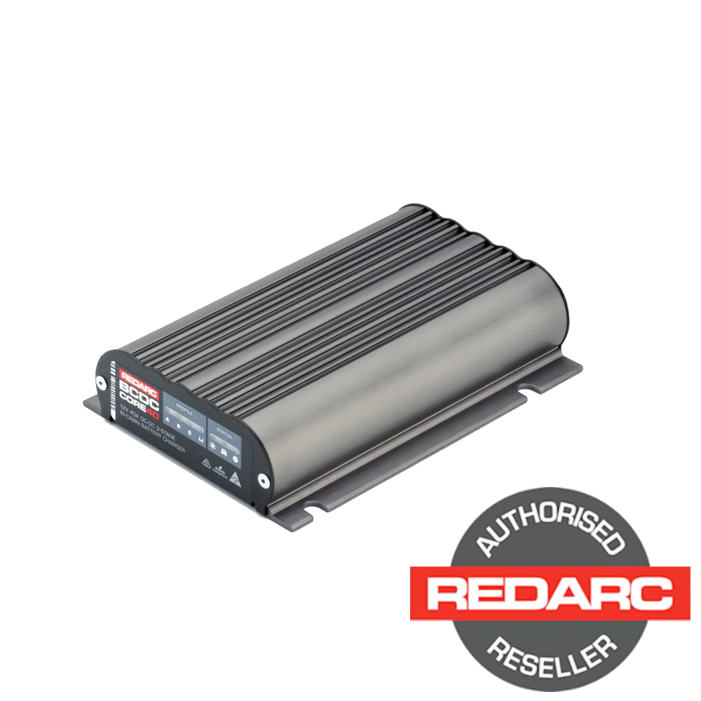 Redarc BCDC 1240 DC-DC Charger: Input 9–32V, output 40A, 600W, suitable for LiFePO4, AGM, Gel, and lead-acid batteries.
