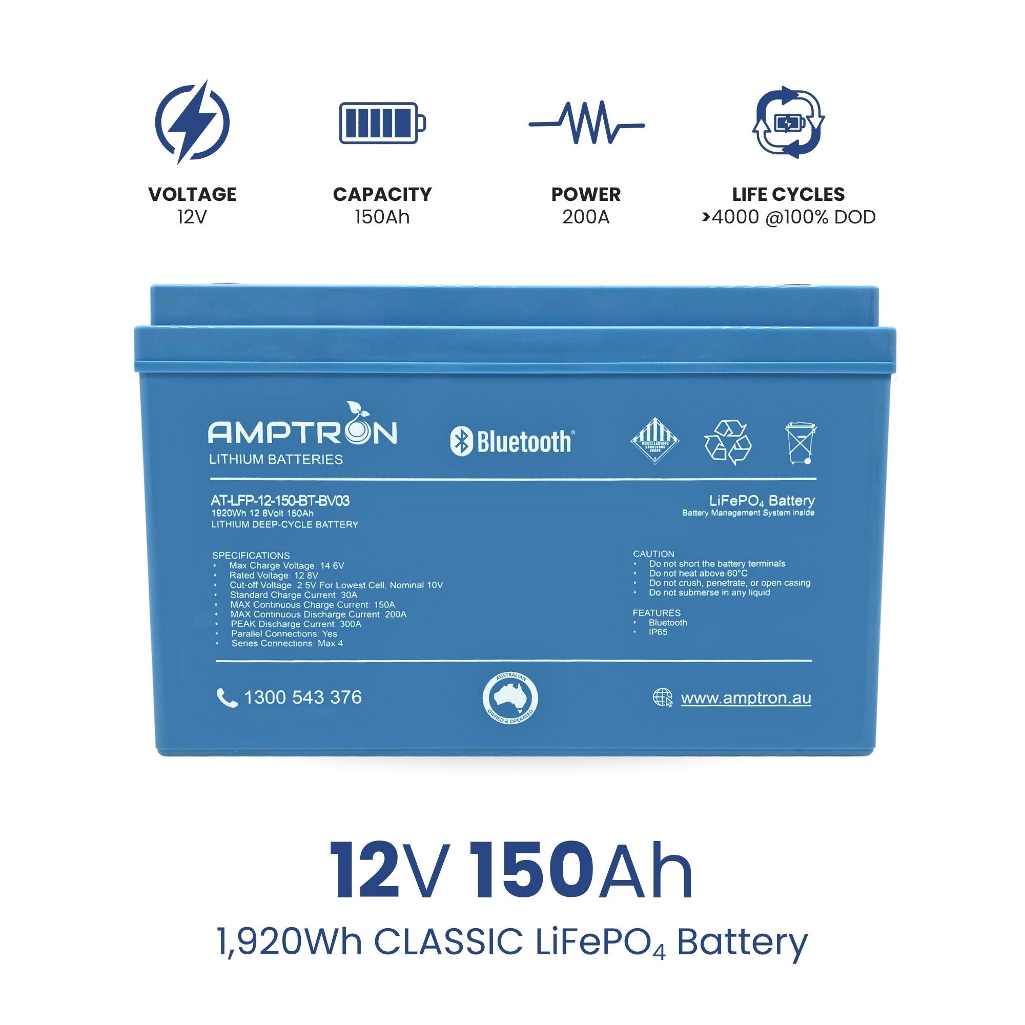 Upgrade your energy storage with the 12V 150Ah 200A Lithium LiFePO4 Battery with Bluetooth — a premium 12 V deep-cycle lithium battery designed for reliable off-grid, caravan, marine, and mobile power setups. This LiFePO4 (Lithium Iron Phosphate) battery delivers 150 Ah (1,920 Wh) of usable energy with a 200 A continuous discharge rating and up to 300 A peak output for short bursts, making it a robust replacement for traditional lead-acid batteries.