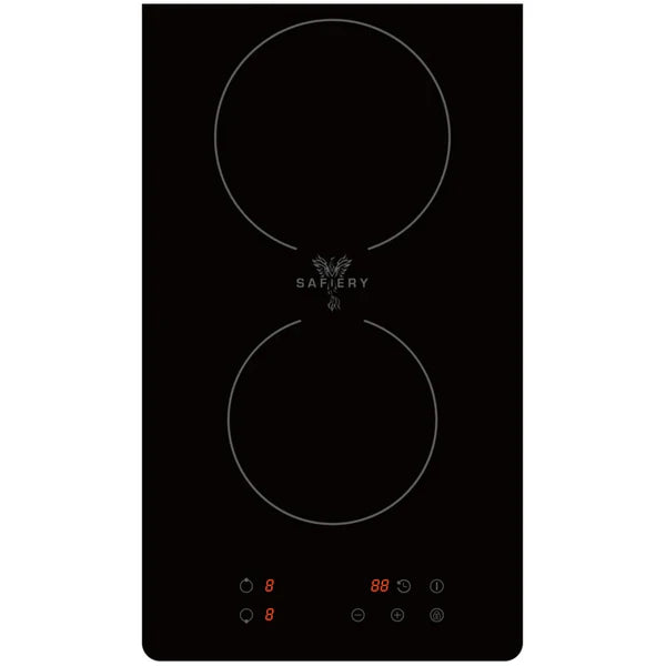 The Safiery 2 Hob Induction Cooktop features built-in 1800W and 1500W hobs with a smart control system that automatically adjusts one hob if the other is turned high. Engineered with German IGBT technology and a Schott Ceran high-grade black crystal plate, it offers precise, efficient cooking.