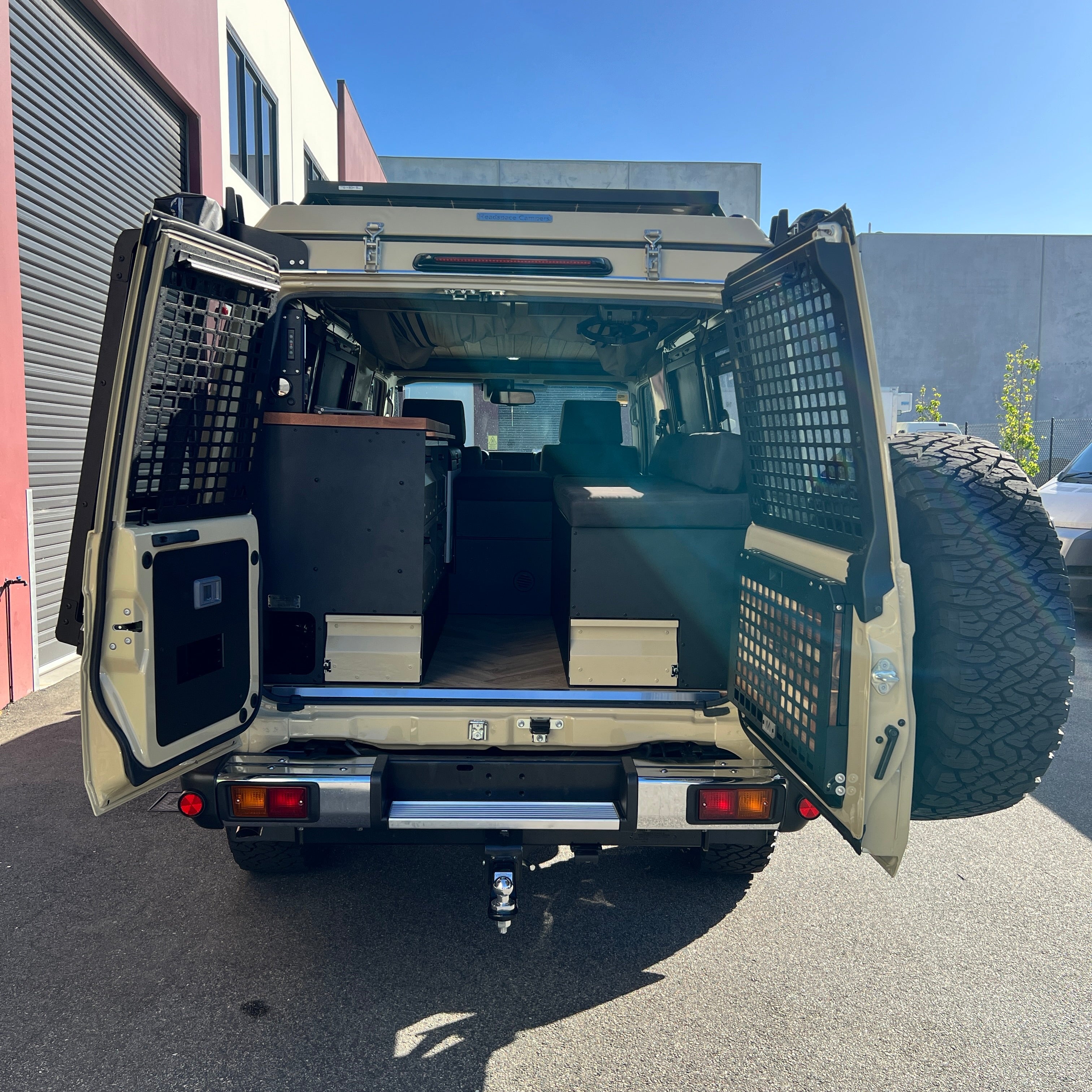 Built to fit both left and right-hand drive Troopies, this kit features lockable compartments, slide-out tables, and space for a 90L fridge, all crafted for convenience and rugged use.