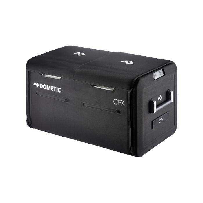 Protect your CFX3 portable fridge/freezer from dirt, dust, scuffs, and damage with this tough thermoformed nylon and EVA cover. Designed for rugged adventures, it features a contoured cutout for easy access to controls, integrated storage pockets for cords and accessories, and vent clearance to prevent overheating. Durable, heavy-duty construction in a modern charcoal finish ensures both protection and style.